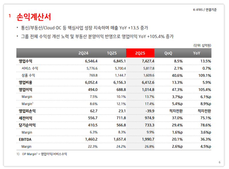 • EBITDA: 1조 9,907억원 (YoY +36.3%)