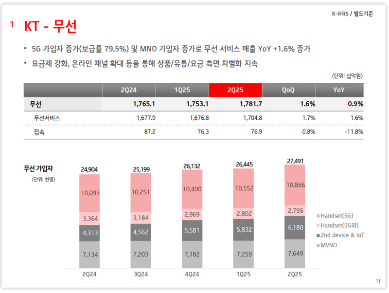 • 무선수익: 1조 7,817억원 (YoY +0.9%)