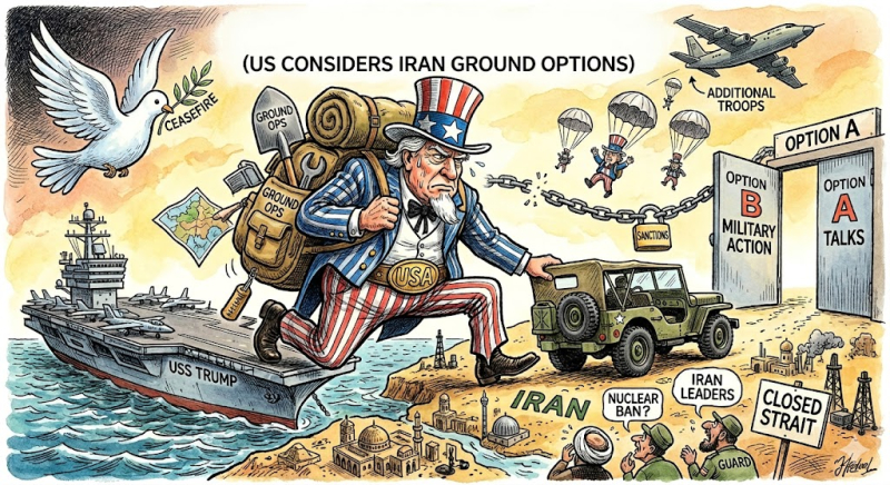 미 당국자들에 따르면, 백악관은 휴전이 연장되지 않을 경우에 대비해 이란의 핵물질 반출을 위한 특수부대 작전이나 호르무즈 해협 개방 및 하르그섬 확보를 위한 대규모 상륙작전 등 구체적인 군사 옵션을 검토 중이다.